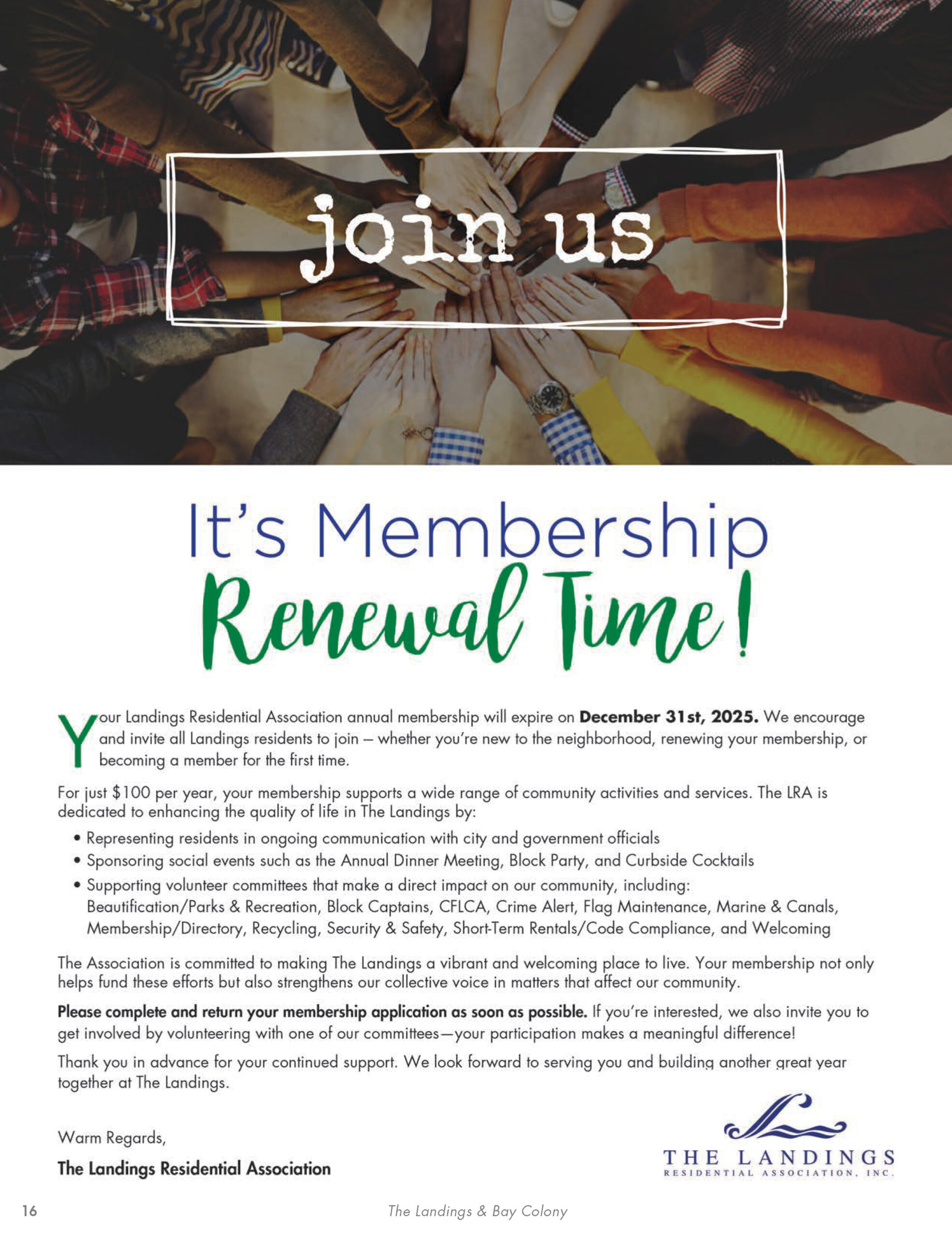 LRA welcomes and needs your support for keeping our neighborhood safe, beautiful and informed. To join,